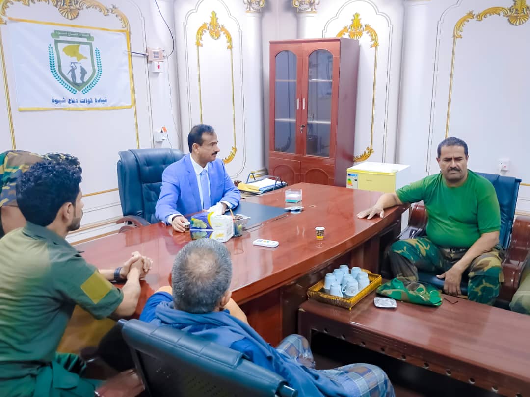 محافظ شبوة يتفقد مقر القيادة العامة لقوات دفاع شبوة