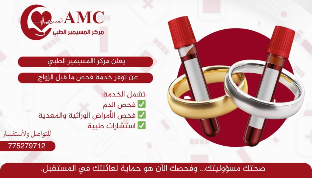مركز المسيمير الطبي يعلن فحوصات وتحاليل مخبرية للمقبلين على الزواج