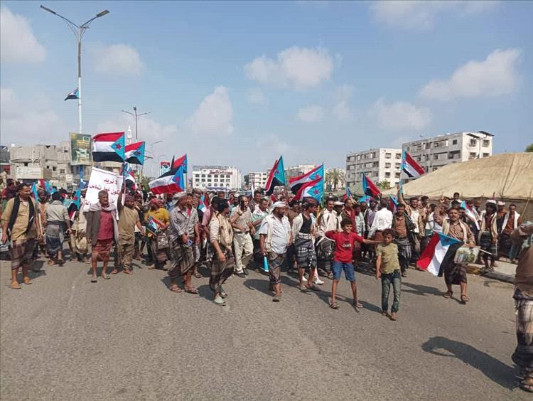 وصلت، صباح الأحد، حشود واسعة من أبناء مناطق الصبيحة قادمة من محافظة لحج وعدد من المناطق المجاورة إلى ساحة العروض في عدن، للمشاركة في الاعتصامات الشعبية.
