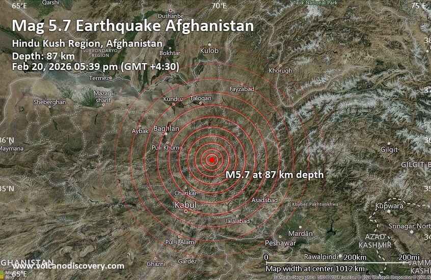 قال مركز الأبحاث الألماني لعلوم الأرض إن زلزالا بقوة 5.7 درجة هز منطقة هندوكوش الجبلية في أفغانستان اليوم الجمعة.