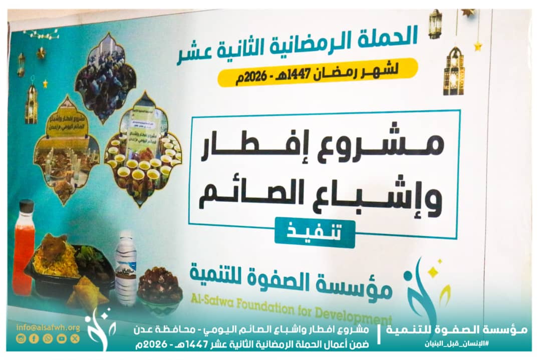 تواصل مؤسسة الصفوة للتنمية جهودها الخيرية والإنسانية ضمن حملتها الرمضانية الثانية عشرة «يا باغي الخير أقبل» لشهر رمضان المبارك 1447هـ، والتي تنفذها في العاصمة عدن وعددٍ من المحافظات المجاورة، بهدف التخفيف من معاناة الأسر المحتاجة وتعزيز قيم التكافل المجتمعي خلال الشهر الفضيل.