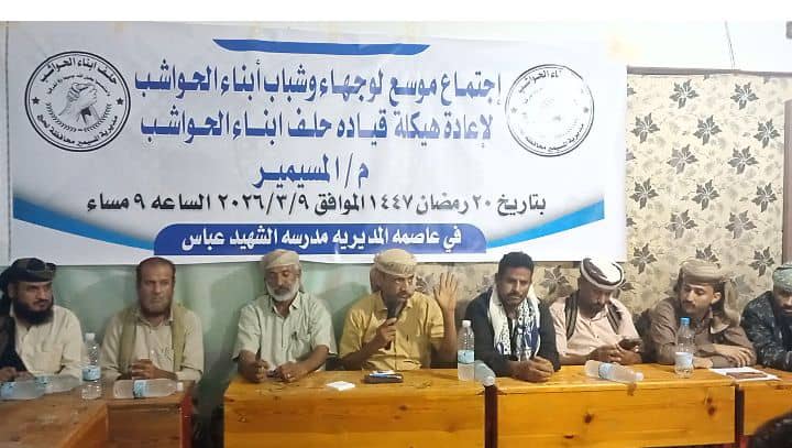 وأكد القيادي محمود عادل الحوشبي، بان هذه المرحلة تستوجب رص الصفوف والتكاتف والتآزر ونبذ أسباب الخلاف للوصول إلى الأهداف والغايات التي تأسس الحلف لأجلها، داعيا الجميع للعمل بروح الفريق الواحد لضمان تصحيح مسار الحلف واستعادة دوره الريادي في حماية وتبني حقوق أبناء الحواشب، منوها بان الحلف هو الحامل الشرعي لقضايا الحواشب والمفوض شعبيا وقانونيا في الدفاع مصالحهم وحماية تطلعاتهم الحقوقية العادلة.