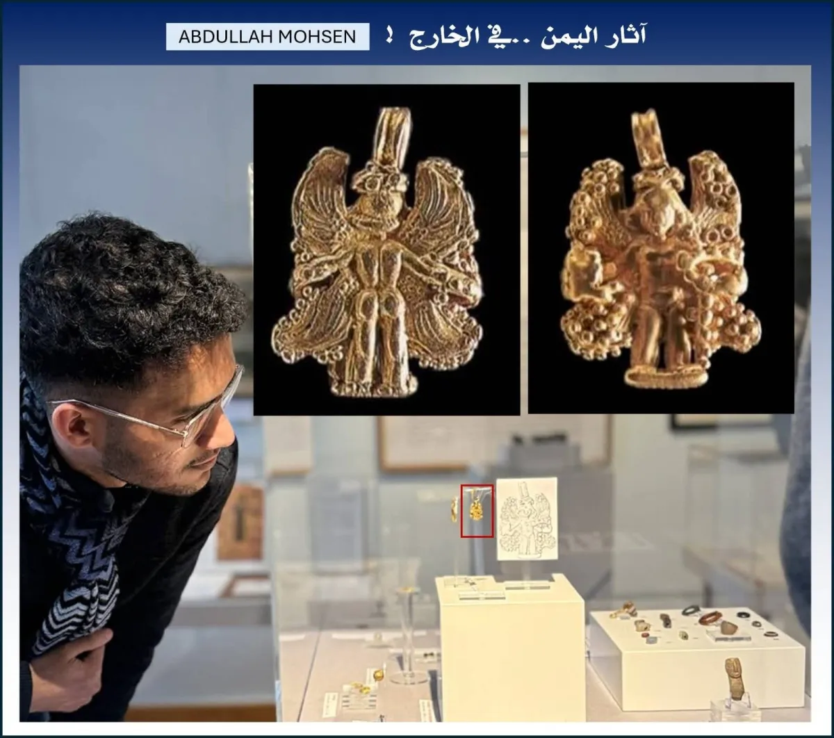 وأوضح محسن أن هذه القلادة الذهبية الفريدة، التي تمثل تمثالًا أنثويًا صغيرًا بحجم السن تقريبًا، تم العثور عليها في محافظة مأرب عام 1960. ورغم قيمتها الأثرية العالية ودقتها وجمالها الإبداعي الفني، إلا أنها لم تُعرض في أي متحف آنذاك.