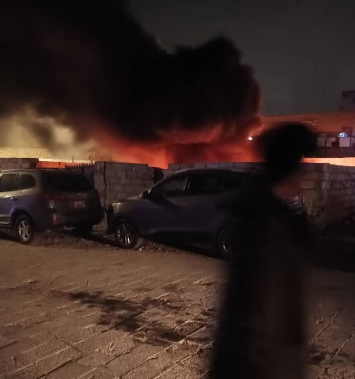 اندلع حريق هائل بالقرب من مسجد الشاذلي بمنطقة حجيف بمديرية التواهي في العاصمة عدن.