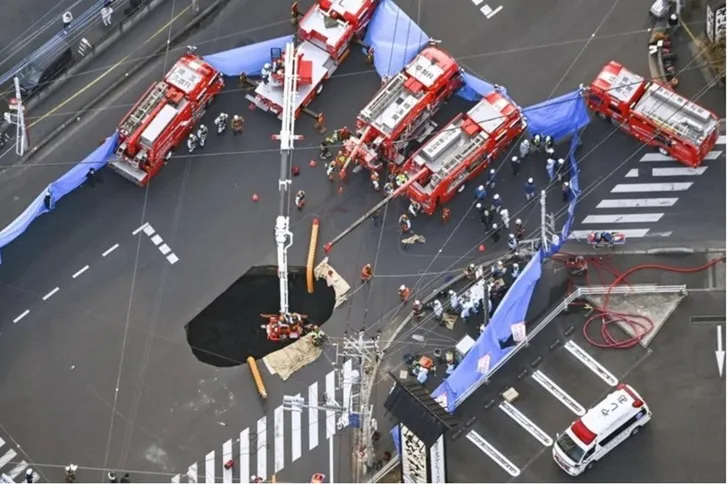 بدأ عمال الإنقاذ في اليابان بناء منحدر للوصول إلى سائق شاحنة يبلغ من العمر 74 عامًا، فقد الاتصال به منذ أن ابتلع انهيار أرضي شاحنته بالقرب من العاصمة طوكيو هذا الأسبوع. وفقًا للمسؤولين، يُرجح أن تآكل أنابيب الصرف الصحي كان السبب وراء الانهيار، حيث تسربت المياه الجوفية إلى الحفرة مما أدى إلى استمرار الانهيار. ولم يتمكن رجال الإنقاذ من التواصل مع السائق منذ عدة أيام، إذ غطت التربة والأنقاض كابينة الشاحنة بالكامل.