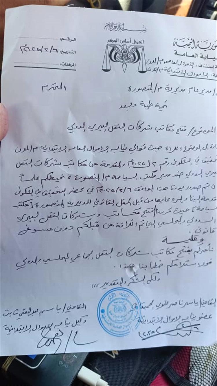 اصدرت نيابة الاموال العامة بمحافظة عدن قرارا يقضي باعادة فتح مكاتب شركات النقل الجماعي بعدن والتي تعرضت للاغلاق القسري.