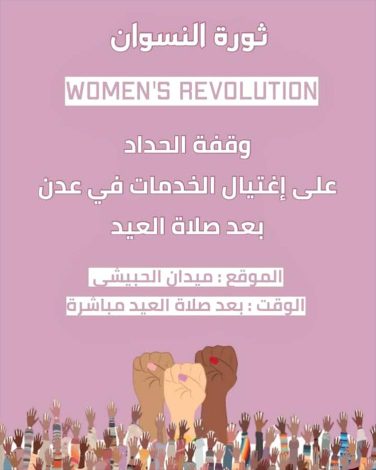 نافذة عدن/ خاص: دعت ناشطات في محافظة عدن إلى وقفة احتجاجية نسائية تحت شعار “ثورة النسوان”، تعبيرًا عن الغضب الشعبي…