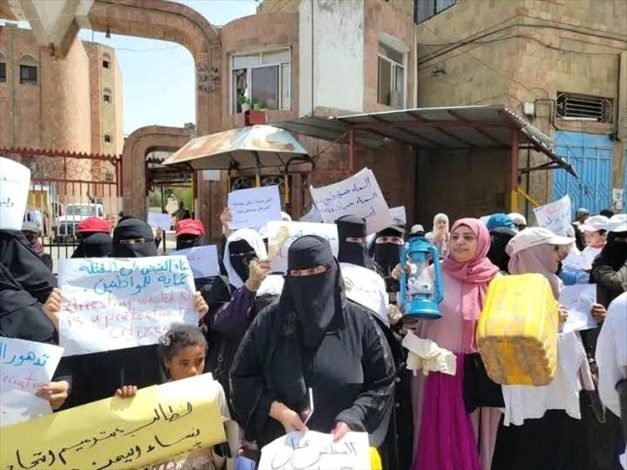 نساء تعز ينظمن وقفة احتجاجية للتنديد بتدهور الأوضاع الاقتصادية وغياب الخدمات