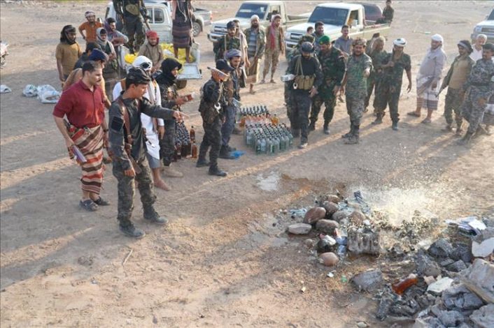 إتلاف مئات القنينات من الخمور في لحج بعد ضبطها بعملية أمنية