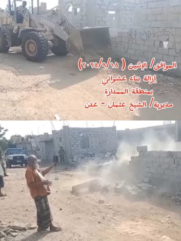 نافذة عدن/خاص: ازال قسم العوائق بمديرية الشيخ عثمان صباح يوم أمس الاثنين ازال بناء عشوائي في منطقة الممدارة شرق مديرية…
